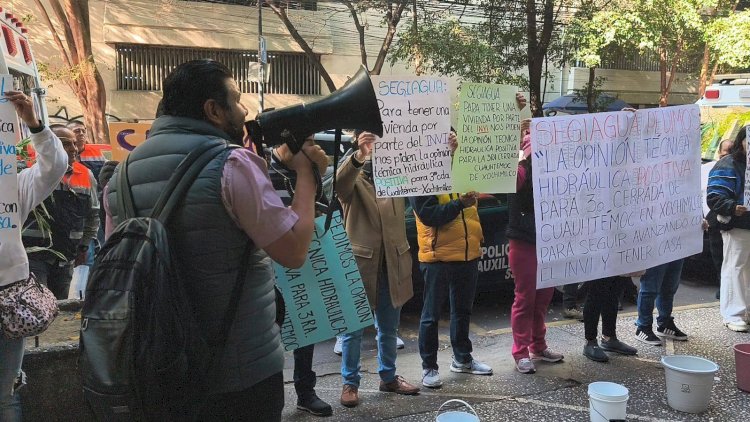 Antorchistas de Xochimilco se manifiestaron a través de una cadena humana frente a la oficinas de SEGIAGUA, una vez que no hay avances en los dictámenes técnicos hidráulicos que el INVI requiere para concretar un proyecto de vivienda impulsado por el Movimiento Antorchista, que beneficiaría a familias que no cuentan con vivienda.