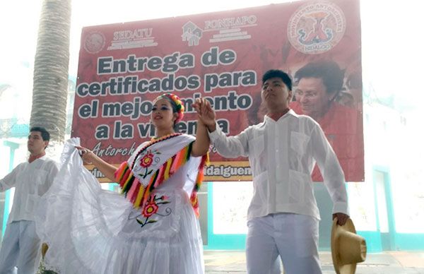Tenango de Doria. Gracias a la gestión realizada por diputados antorchistas, este jueves fueron entregados certificados para el mejoramiento a la vivienda de decenas de familias de la región Otomí-Tepehua.