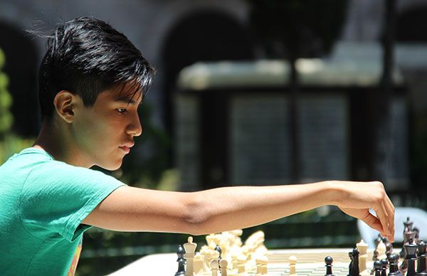 Puebla, Puebla. Jóvenes, niños y adultos de diferentes edades participaron este jueves en el Primer Torneo de Ajedrez en la capital poblana organizado por el Movimiento Antorchista, que tuvo lugar en el zócalo de la ciudad.