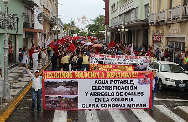 Veracruz, Ver.- Ante la nula solución a demandas de servicios para familias que habitan en colonias de la Reserva de Vergara Tarimoya 4 y de Matacocuite, más de 2 mil antorchistas marcharon por las principales calles y avenidas del Puerto de Veracruz a fin de exigir al alcalde Ramón Poo Gil, cumplimiento a obras de primera necesidad.